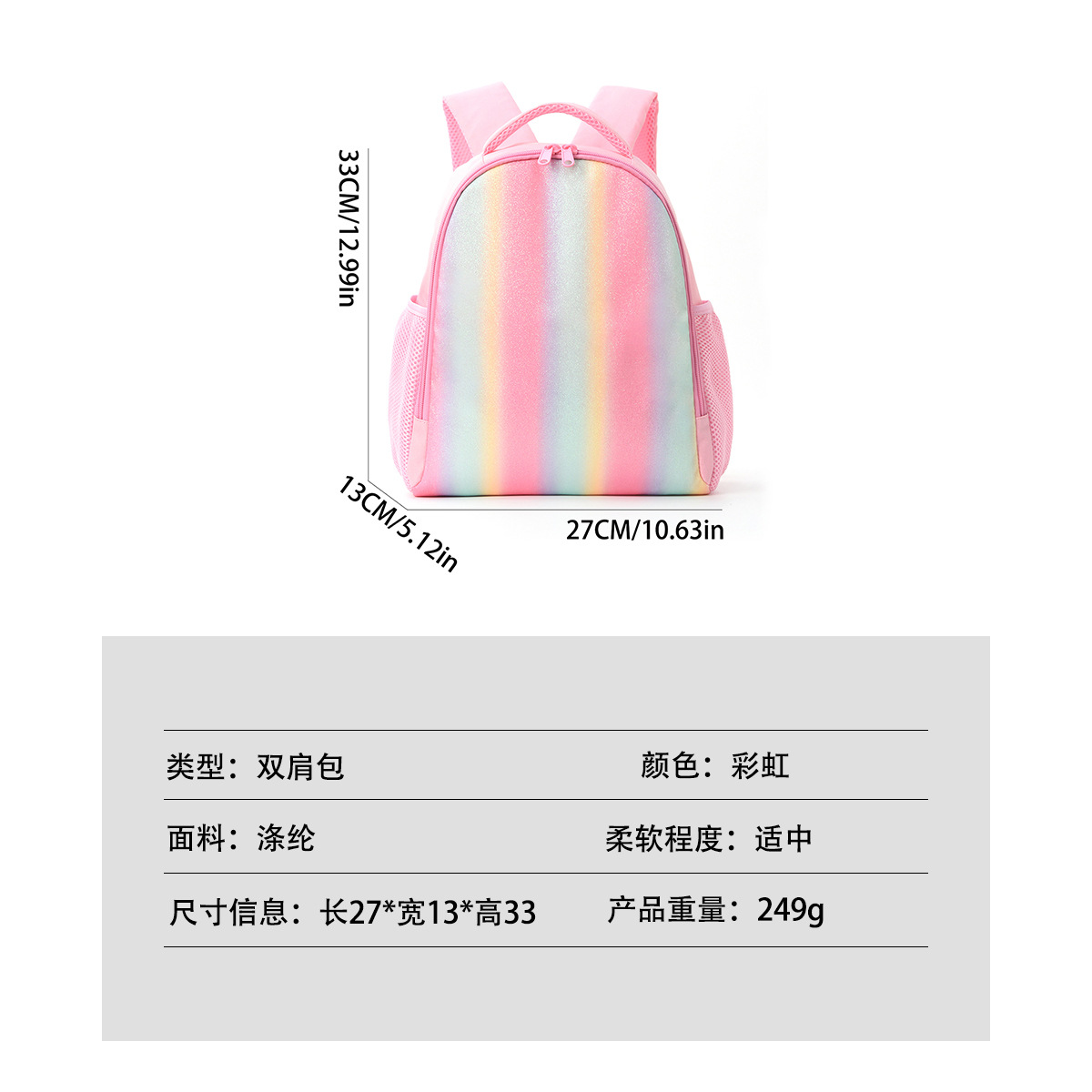 小学生彩虹书包儿童双肩背包出游轻便休闲双肩包